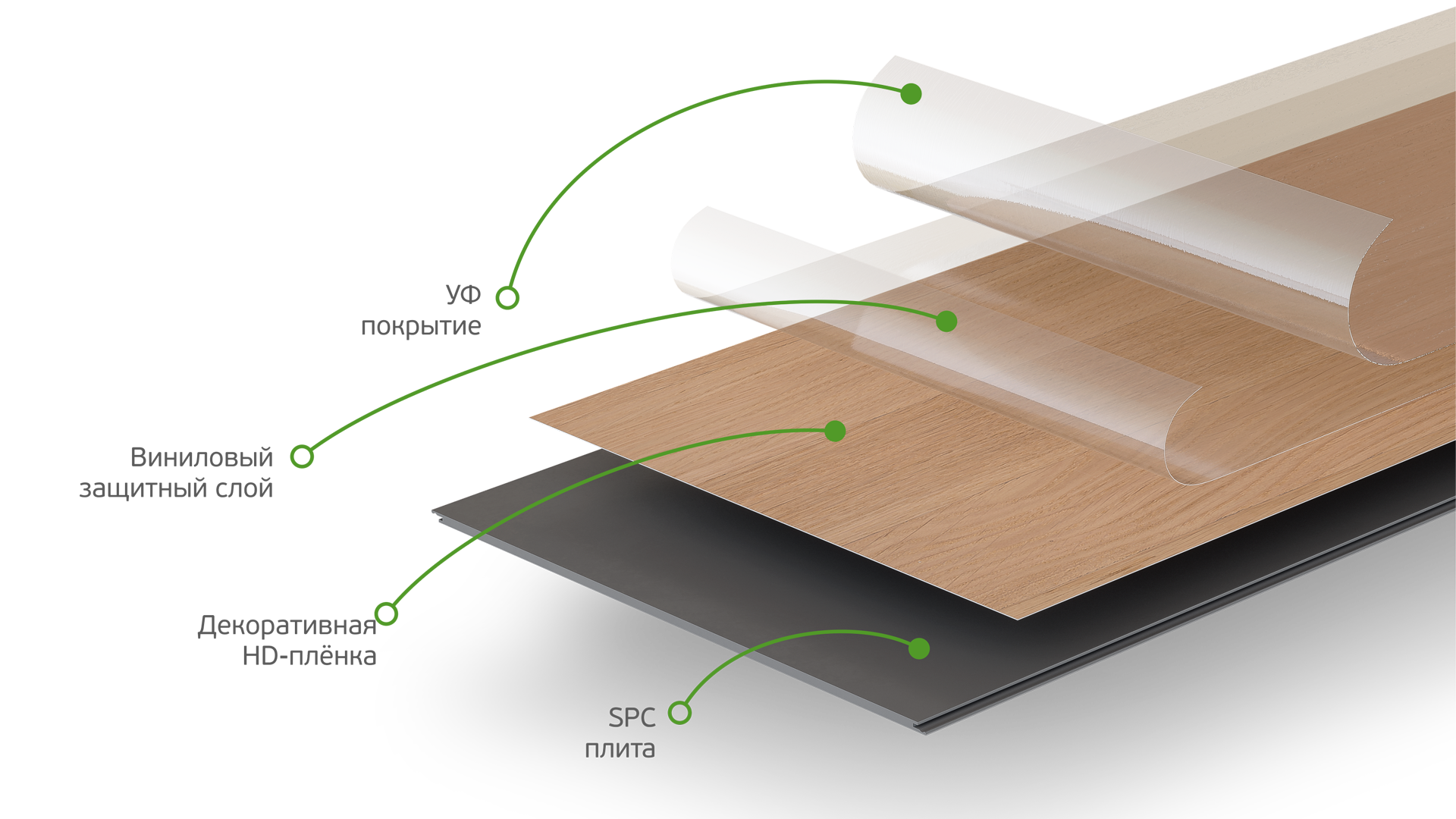 Кварцевый ламинат 32/41 класса на основе каменно-полимерного композита подходит для использования на кухне, в спальне, гостиной, в коридоре и даже в ванной. Возможна укладка одним полотном без порогов во всей квартире, если площадь не более 200м2.